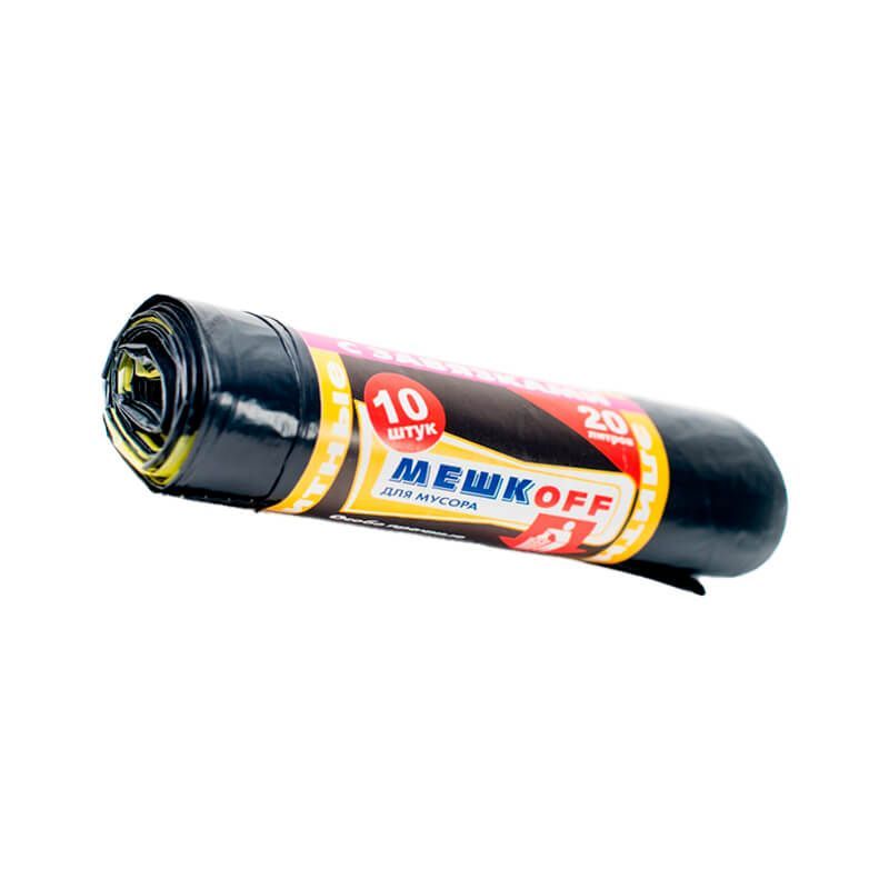 Мешки для мусора 20 л, с завязками, черные, в рулоне 10 шт., ПВД, 30 мкм, 500х450 мм, МЕШКОFF, 4666