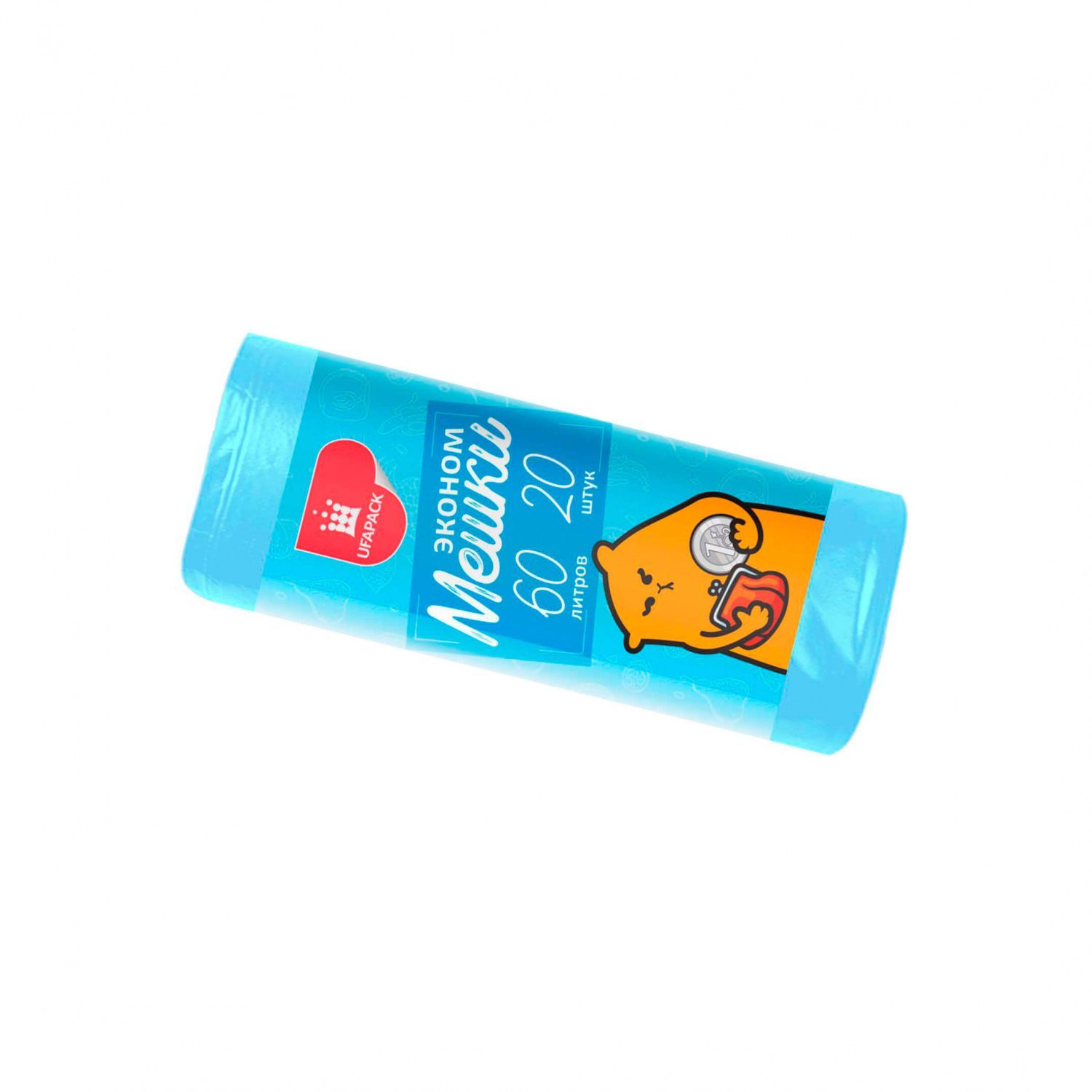 Мешки для мусора 60 л, голубые, в рулоне 20 шт., ПНД, 7 мкм, 680х580 мм, Эконом, МЭ3865 (ПМ-60-20)