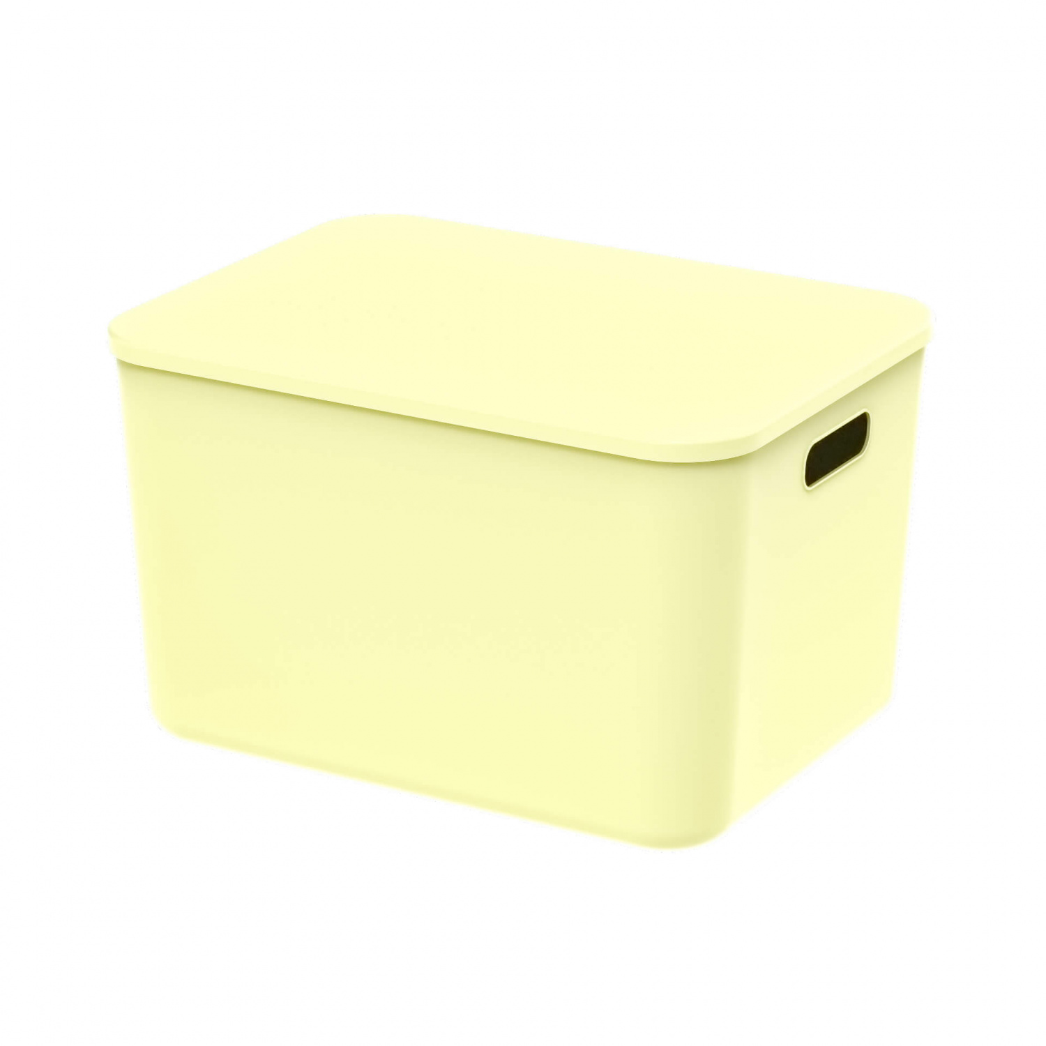 Ящик пластиковый вкладываемый 410х305х245 мм, светло-желтый, с крышкой – легкость и порядок в одном решении