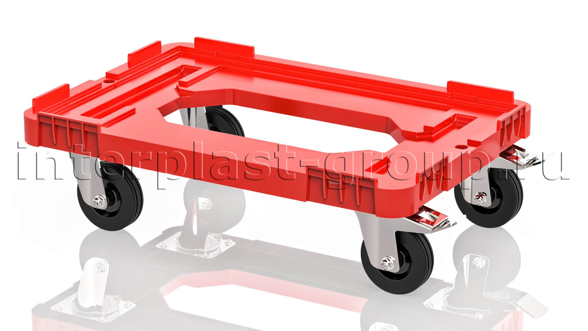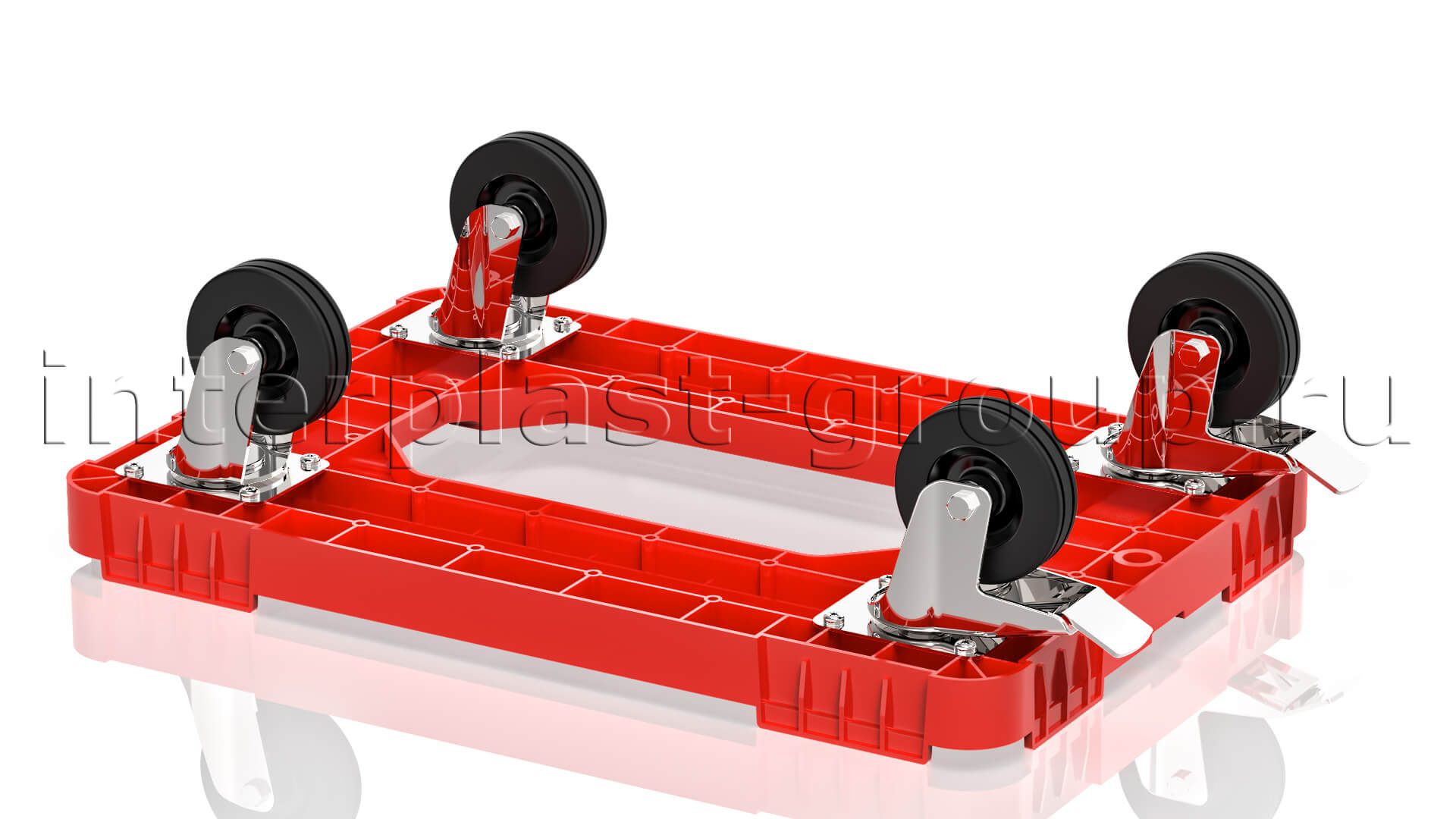 Тележка пластиковая с отверстием 2 колеса с тормозом красная в Ярославле