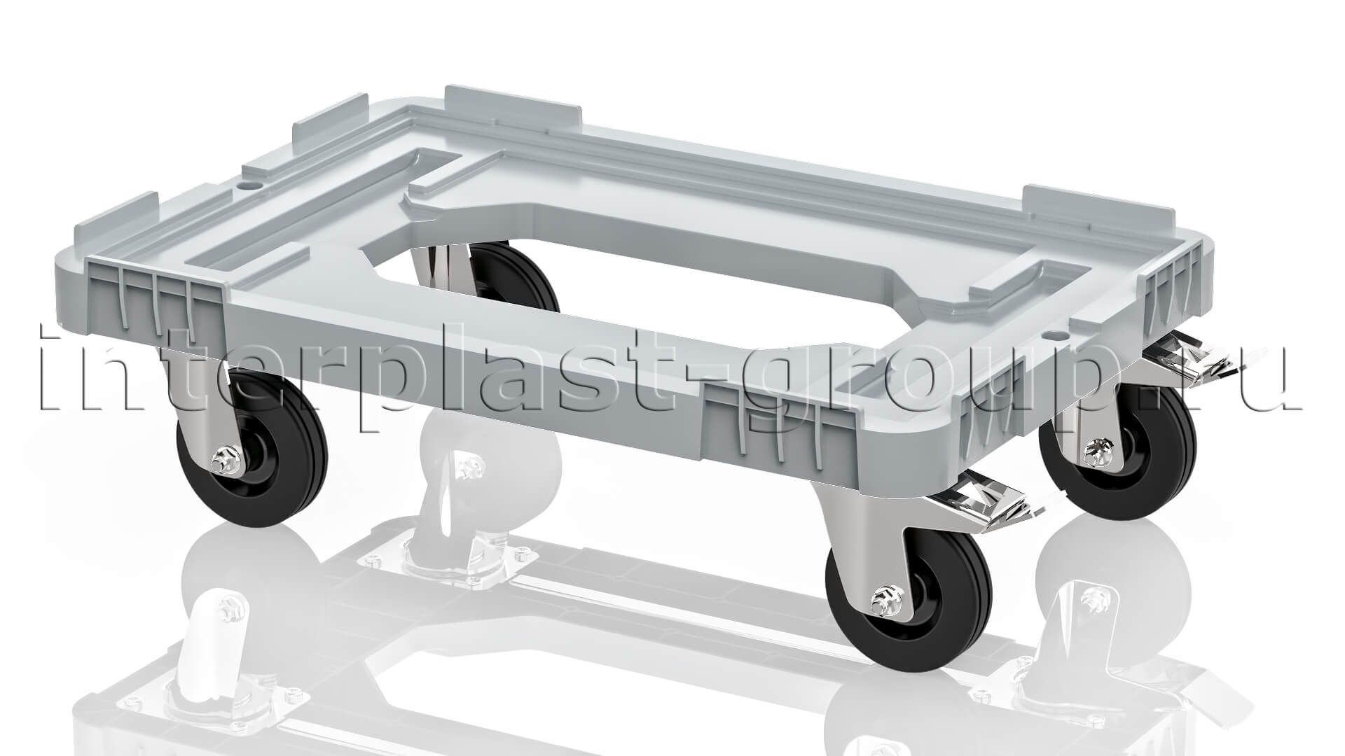 Тележка пластиковая с отверстием 2 колеса с тормозом усиленная серая в Ярославле