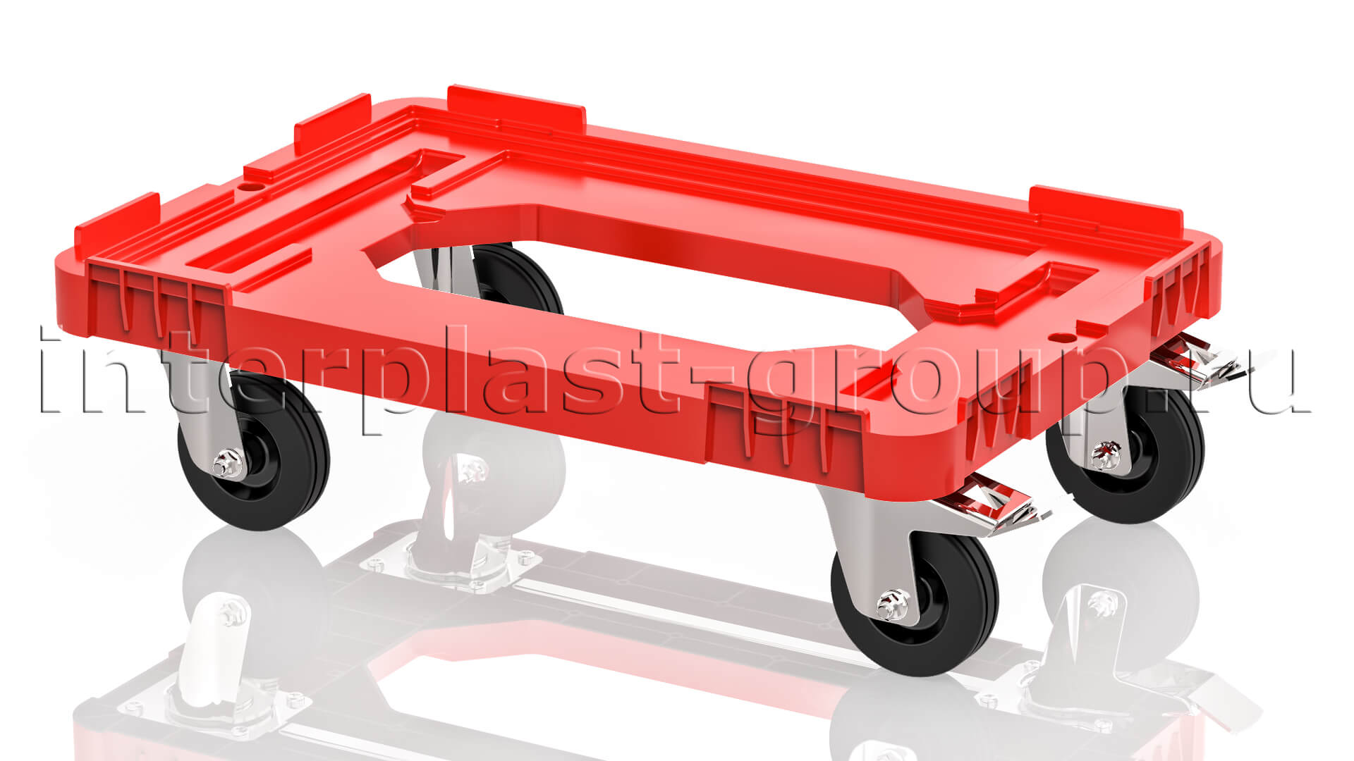 Тележка пластиковая с отверстием 2 колеса с тормозом усиленная красная в Ярославле