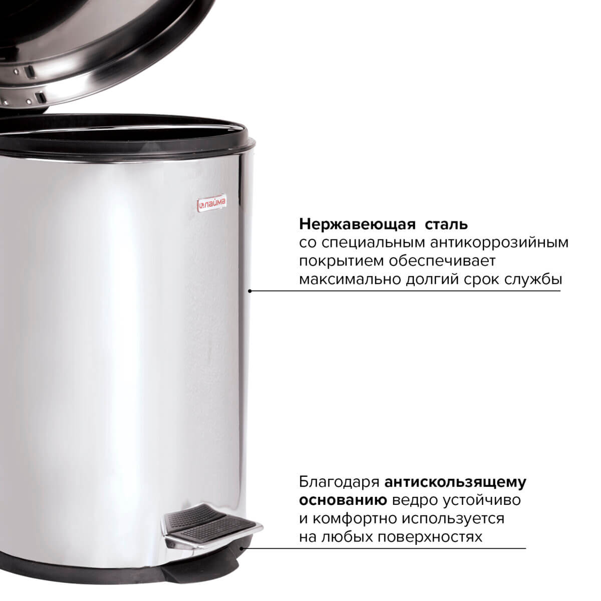 Ведро-контейнер для мусора (урна) с педалью LAIMA Classic, 12 л, зеркальное, нержавеющая сталь, со съемным внутренним ведром