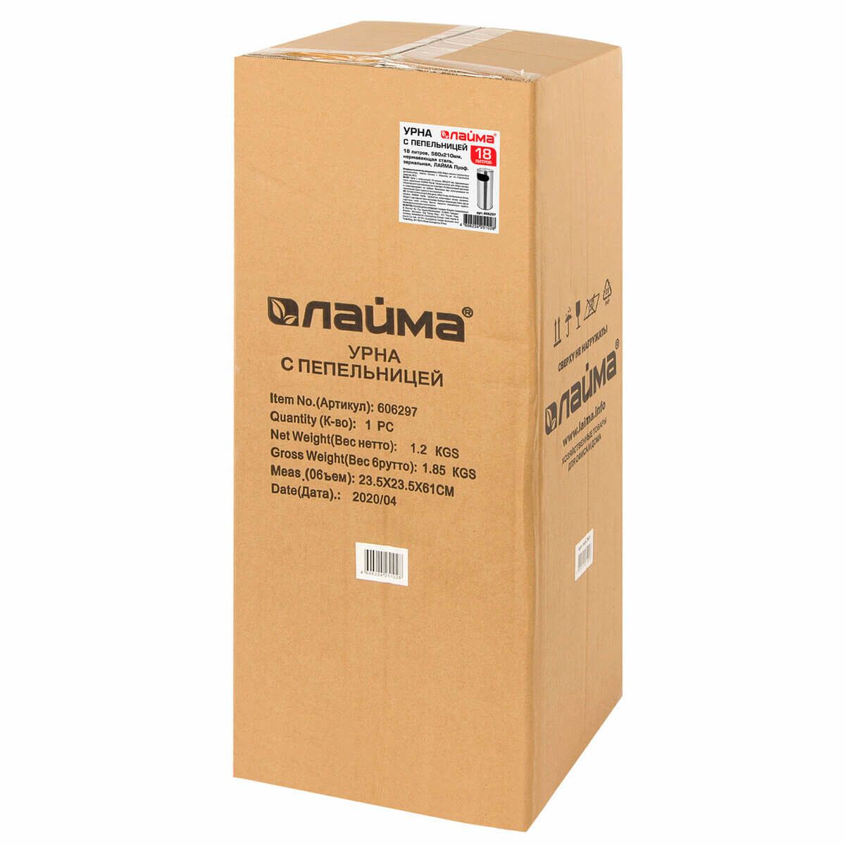 Урна с пепельницей 18 литров, нержавеющая сталь, зеркальная, LAIMA PROFESSIONAL в Ярославле
